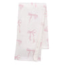 Pink bows add the perfect touch to this charming coquette aesthetic stroller blanket. The front is made in soft minky and the back is a luxurious white faux shearling. It is incredibly soft and gentle on a baby's delicate skin. Perfectly sized at 30 inches by 40 inches, makes it ideal for moms, dads, and babies on the go as a stroller blanket and for wrapping baby to stay warm. It makes a great baby shower gift or welcome home baby gift. SKU: 659034, UPC: 084122020085.