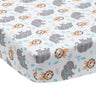 Jungle Fun White/Gray/Blue Elephant & Lion Baby Fitted Crib Sheet