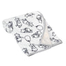Everyone’s favorite bear, Winnie the Pooh, decorates this stylized blanket in a sketching charcoal color. Pooh is standing, marching forward, and holding on to his favorite balloon. He is on a white minky ground and the back of the blanket is a tan color cotton jersey blend. This fun, on the go must have blanket is machine washable for easy care. It is 30” X 40” and is snuggly soft. SKU: 630034P, UPC: 084122009714.